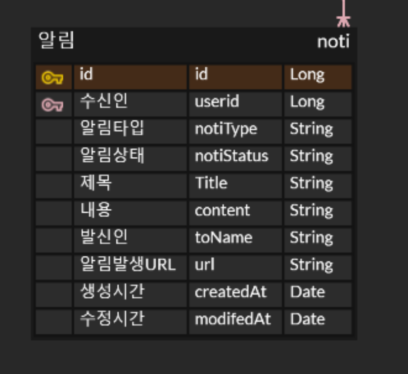 추후 추가 될 예정입니다. 현재는 회원가입 승인을 위한 ADMIN, 전체 공지를 위한 NOTICE, 채팅방 알림을 위한 CHATROOM을 enum으로 지정했습니다.